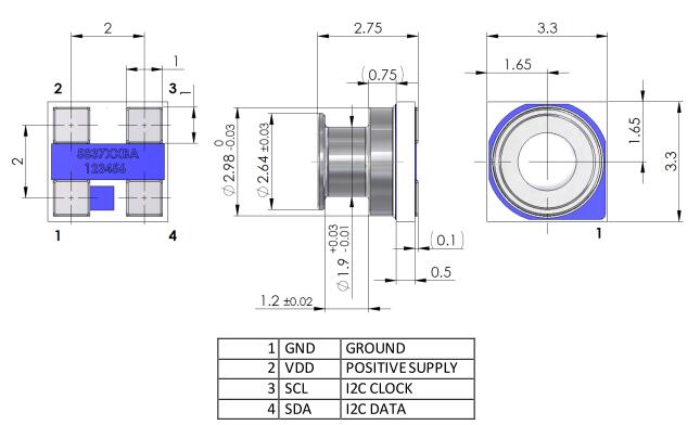 陶瓷 - 金屬封裝,3.3×3.3×2.5mm