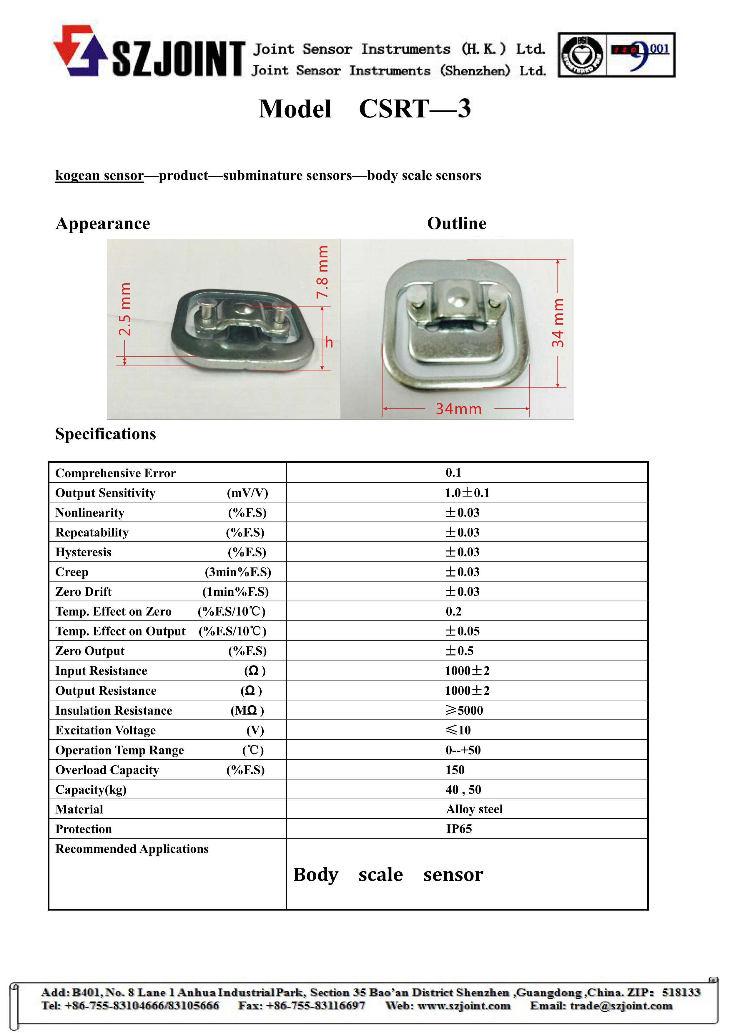 名稱: 人體秤用鋼質稱重傳感器 CSRT-2